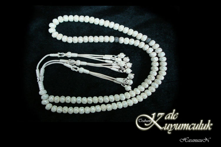 1000 ayar gümüşten imal edilen kazaziye tesbih ürünlerimiz, 33'lük yanında 99'luk olarak da kullanılmaktadır.